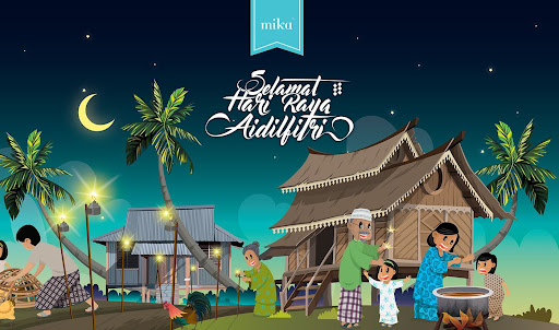 Gambar suasana perayaan hari raya aidilfitri kartun selamat hari raya .